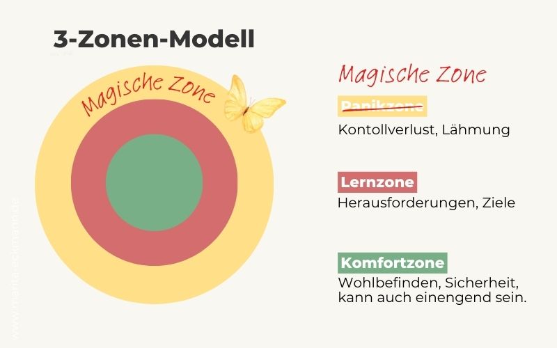 Wenn wir über die Lernzone hinausgehen, kommen wir zur Panikzone. Zumindest wird sie so genannt, wenn wir bei diesem Modell bleiben.